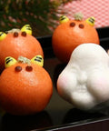 鬼とお福の愛らしい表情を薯蕷饅頭で表現した紅梅屋オリジナルの和菓子です。