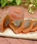 干し柿の中に、黒胡麻餡を詰め、柿を表しました。 ごまの香ばしさと、干し柿特有の味わいが絶妙な逸品です。 市田柿の干し柿を使用していますので、美味しさも絶品です。栗を丸ごと1個使用した栗道楽との詰合せ。ご進物にお薦めの逸品です。